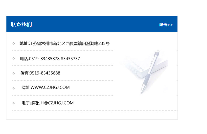 傳真:0519-83435688    郵編:213135    網(wǎng)址:WWW.czjhgj_com.ycszyey.com    電子郵箱:JH@czjhgj_com.ycszyey.com